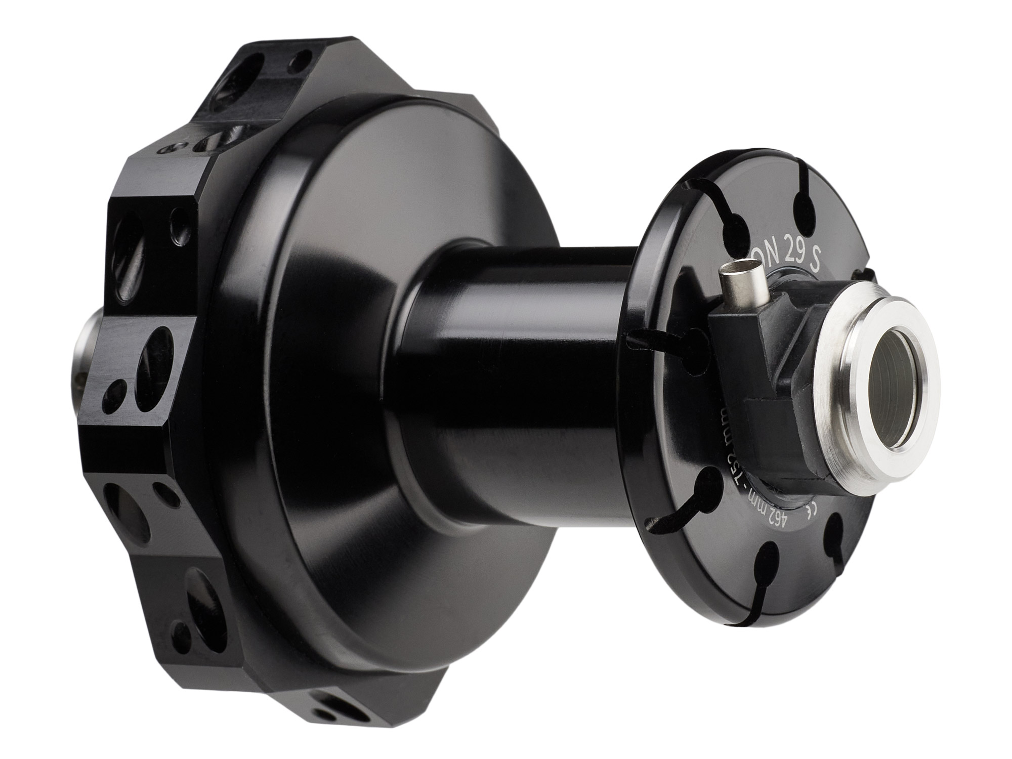 A spoke pattern with straight pull spokes achieves the ideal balance between stiffness/load capacity and weight. There is tangential lace pattern on the rotor mount side and radial lace pattern on the side where the connections are. Available is a version with equal spoke counts (16:16) as well as a version with unequal spoke counts (16:8).