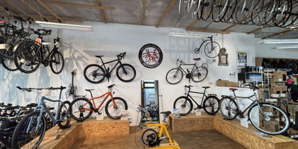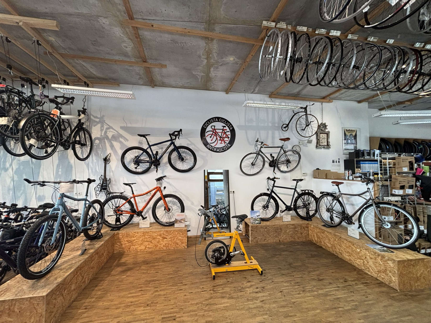 Im Laufe der Jahre hat sich Guten Biken von einem winzigen Kellerraum zu einem Fahrradgeschäft mit einem großen Ausstellungsraum, zahlreichen Arbeitsplätzen für Mechaniker und einem Team entwickelt, dass sich um die Bedürfnisse der Kunden kümmert – ob es darum geht, ein treues Rad mit neuen Teilen zu tunen, ein paar Räder von Hand zu bauen, eine ausführliche Beratung zu einer Sonderanfertigung zu geben, dafür zu sorgen, dass ein dringend benötigtes Ersatzteil rechtzeitig eintrifft, bevor man sich auf ein zweirädriges Abenteuer begibt. Der 2023 ins Leben gerufene Webshop ermöglicht es den Kunden aus der Ferne in den Regalen stöbern können.