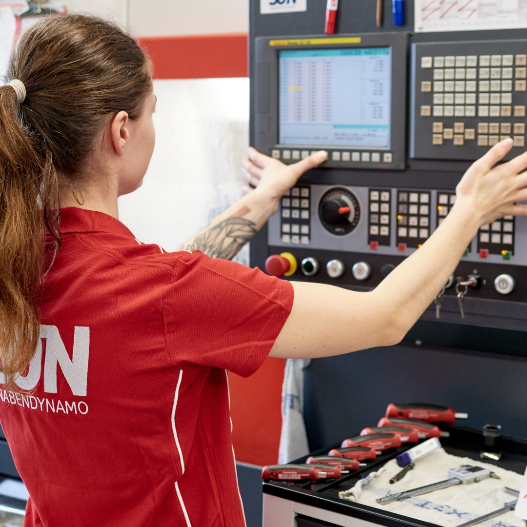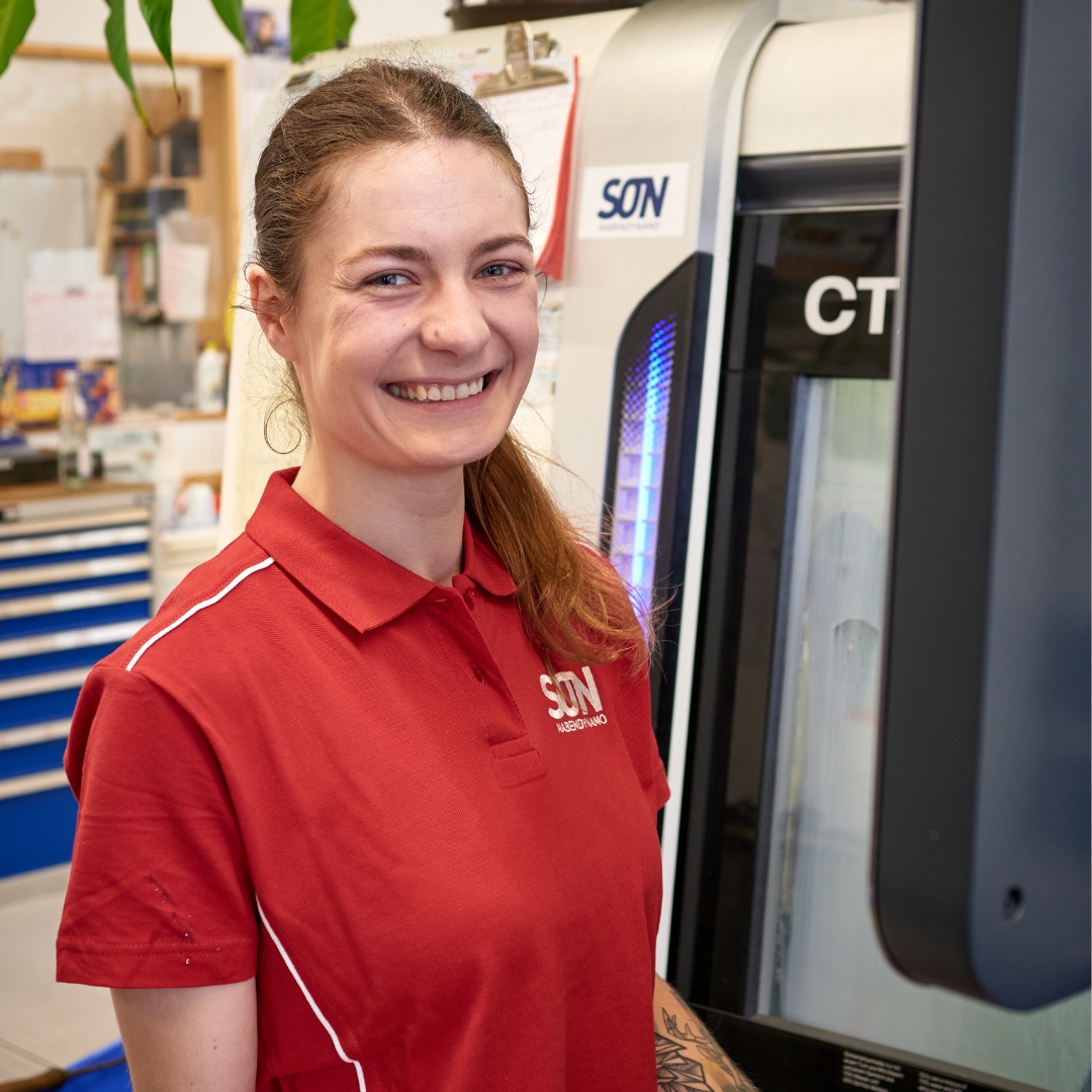 Lisa löscht nicht nur Brände bei der freiwilligen Feuerwehr, sondern jetzt auch in unserer Fertigung! Ihr liegt die echte Schaffer-Mentalität: Sie mag es, wenn klare Aussagen getroffen werden und nicht lange um den heißen Brei geredet wird. Vor fünf Jahren hat sie ihre Lehre als Zerspanungsmechanikerin beendet. Sie konnte bereits viel Erfahrung sammeln und fühlt sich als Frau in der Fertigung bestens aufgehoben. Lisa, wir heißen dich herzlich willkommen in unserem Team!